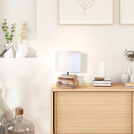 Bordlampe Oslo, hvit/lyst tre, høyde 30 cm, lin/tre