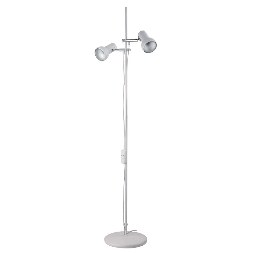 Hvit EIFEL gulvlampe i retrodesign Den 2 lyskilder store EIFEL gulvlampen bringer følelsen av 70-tallet tilbake i stuen. Den har 2 spotlights i en keramisk fatning, som sitter på bevegelige metallskjøter. En manuell bryter gir ekstra komfort. Lampene fra denne produsenten er omhyggelig håndlaget i Tyskland. Dette garanterer holdbare produkter av høy kvalitet som oppfyller de høyeste kvalitets- og sikkerhetsstandarder.