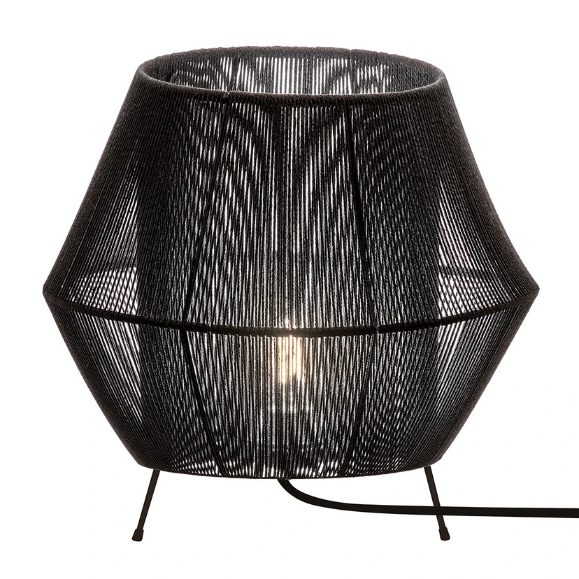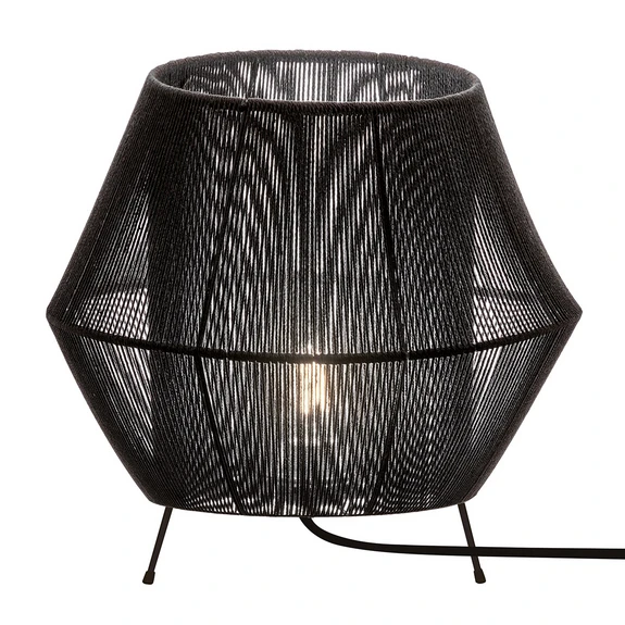 En svart diamant som ekstra belysning på kommoden i stuen, som gir utsikt over lyskilden. Slik presenterer Zaira bordlampe seg, den ytre skjerm er formet som en diamant. Det er skjult en sylinderskjerm der lampen er satt inn. Hele konstruksjonen av lampen er sammenvevd med svartfarget naturlig tau, slik at skjerm ser veldig luftig ut og gjør det mulig for betrakteren å gjenkjenne lyskilden. Zaira passer inn i moderne så vel som skandinavisk møblerte oppholdsrom.