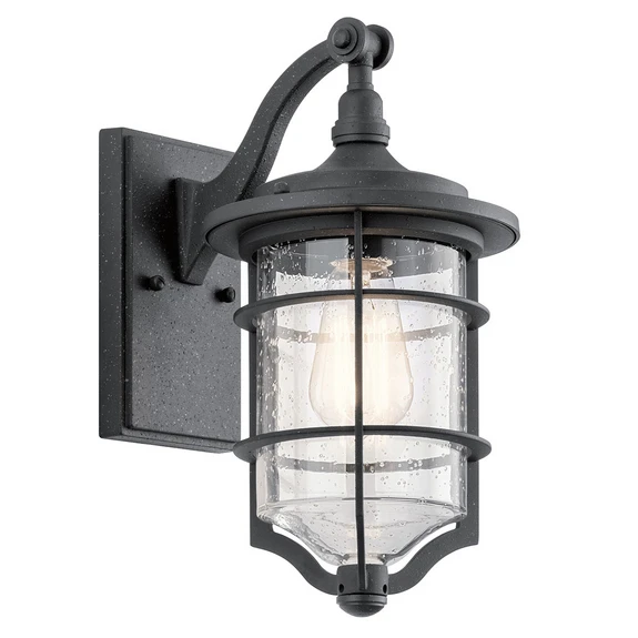 Stilen til dette lanterneformede utendørs vegglampen, som følger med mange eiendomsdesigner, er inspirert av nautisk vitenskap. For et moderne preg, holdt det rektangulære veggfeste og lampearm bare bekymring. Denne fantastiske lyskilde får en liten årgangsstil av glassets frøstruktur, som også gir lyset som sendes ut med en veldig atmosfærisk karakter.