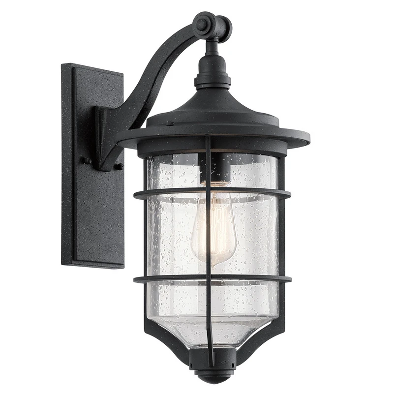 Stilen til dette lanterneformede utendørs vegglampen, som følger med mange eiendomsdesigner, er inspirert av nautisk vitenskap. For et moderne preg, holdt det rektangulære veggfeste og lampearm bare bekymring. Denne fantastiske lyskilde får en liten årgangsstil av glassets frøstruktur, som også gir lyset som sendes ut med en veldig atmosfærisk karakter.