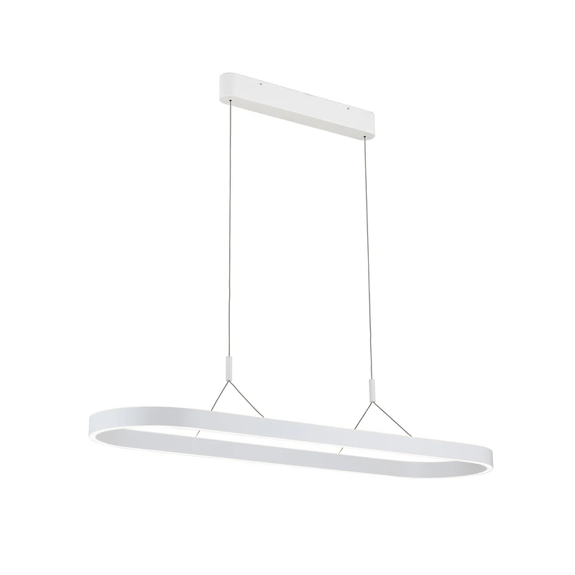 Høydejusterbar Carrara LED-hengelampe gir høy grad av fleksibilitet når det gjelder belysning Carrara-pendellampen kombinerer toppmoderne teknologi med elegant design og er en imponerende og samtidig stilfull HighLight i ethvert rom. Med en effekt på 80 watt og en høy lysfluks gir den en sterk og behagelig belysning. Fargetemperaturen (CCT) kan velges etter behov mellom 2700, 3000 og 4000 Kelvin for å skape ønsket atmosfære. Dette gjøres før installasjon ved hjelp av DIP-bryteren på baldakinen. LED-hengelampen imponerer med sin moderne design. Baldakinen, som holder den ovale aluminiumsringen med to stålkabler, føyer seg harmonisk inn i ulike møbleringsstiler. De innebygde LED-lampene gir både indirekte uplight og direkte downlight, noe som skaper en behagelig og allsidig belysning. Et spesielt HighLight ved pendellampen er LIFT-funksjonen, som muliggjør kontinuerlig høydejustering under drift og dermed fleksibel lysdesign - dimbar med LED-dimmer, LED-faseavsnittdimmer, LED-fasesavsnittdimmer, fasesavsnittdimmer