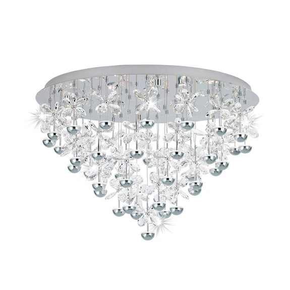 LED-taklampe Pianopoli med glitrende krystallblomster