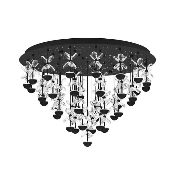 LED-taklampe Pianopoli med glitrende krystallblomster