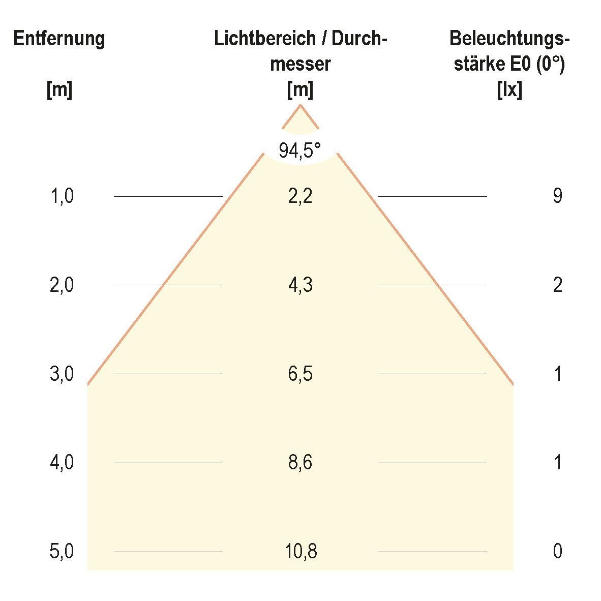Takket være beskyttelsesklasse IP65 er LED-lys 441520A beskyttet mot vannstråler og kan derfor brukes utendørs. Den leveres med åpne ledningsender for tilkobling til passende driver (se tilbehør).