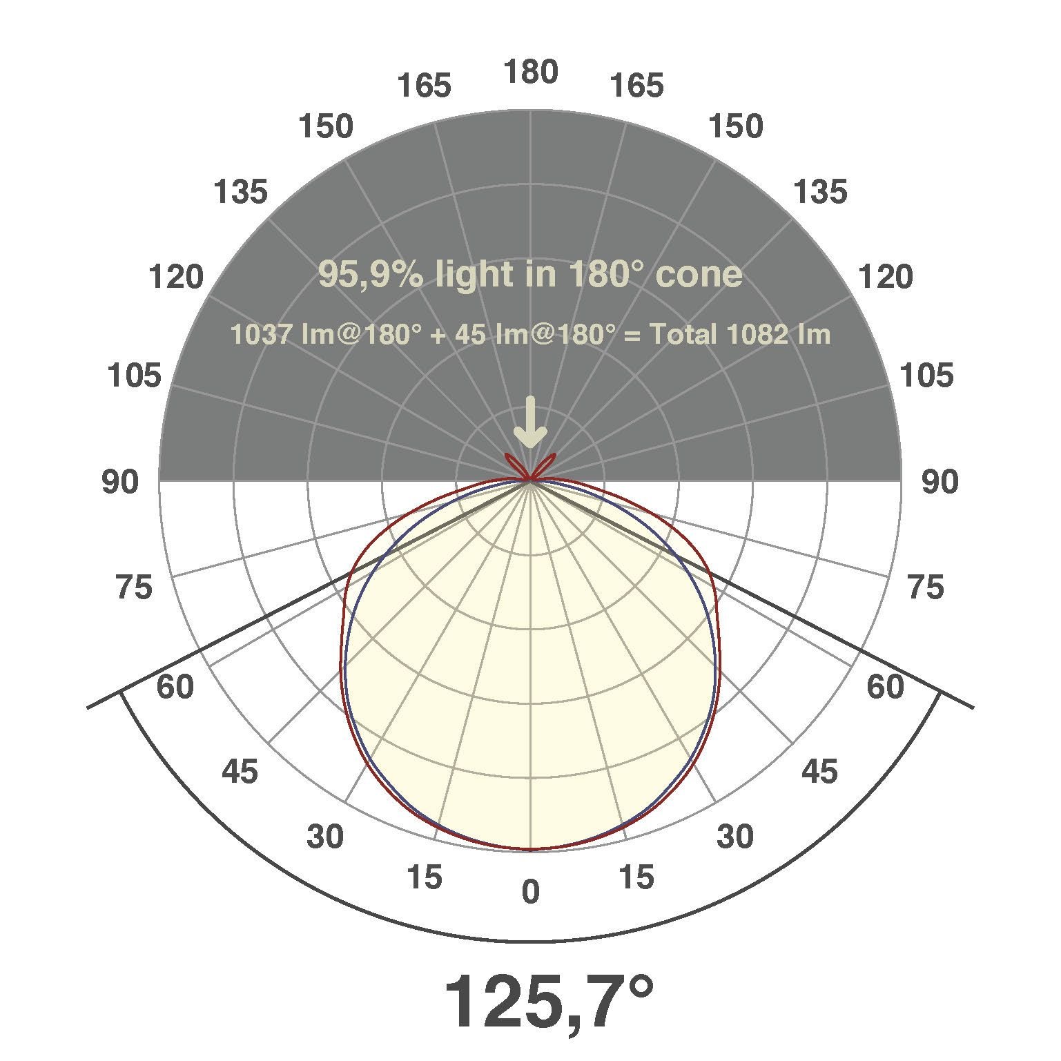 - Lyskilde: 630 LED – 55 W totalt
