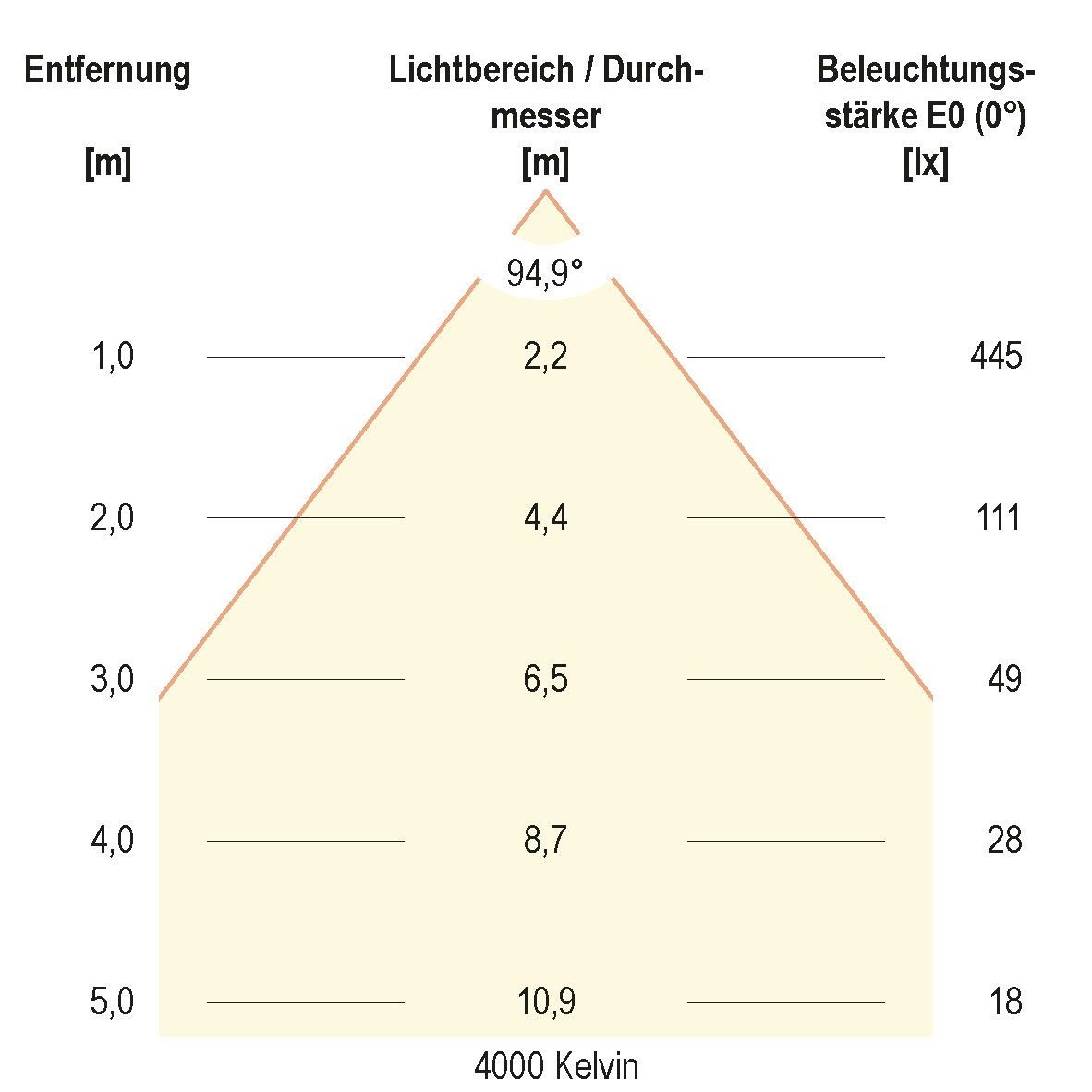 - Fargetemperatur justerbar via bryteren på lampen: 3 000 K, 4 000 K, 5 700 K