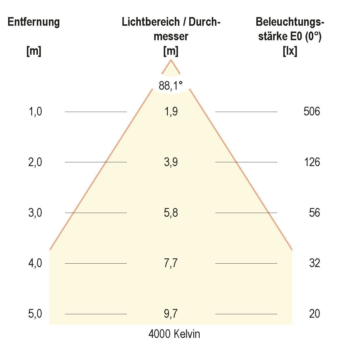 Fargetemperaturen kan stilles inn med en bryter på baksiden før montering. Her har du valget mellom varmhvit (3.000 K), kjølig hvit (4.000 K) og dagslys (5.700 K). I tillegg kan intensiteten til Solido85 dimmes utvendig ved å bruke forkant/bakkant.