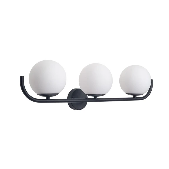 Sfera Triple vegglampe med tre glassskjermer - kapslingsgrad IP44 Sfera Triple vegglampe imponerer ikke bare med sin moderne design i svart og de tre sfæriske glassskjermene, men også med sin allsidighet. Denne lampen er perfekt for å skape en stemningsfull atmosfære i ulike rom som bad, gang, stue eller spisestue. Sfera Triple vegglampe er et mesterverk av belysning som er verdsatt både for sitt estetiske utseende og sin evne til å forvandle atmosfæren i et rom. Med sin enkle eleganse og myke lysfordeling er den den ideelle løsningen for alle som setter pris på stil og funksjonalitet - eksternt dimbar
