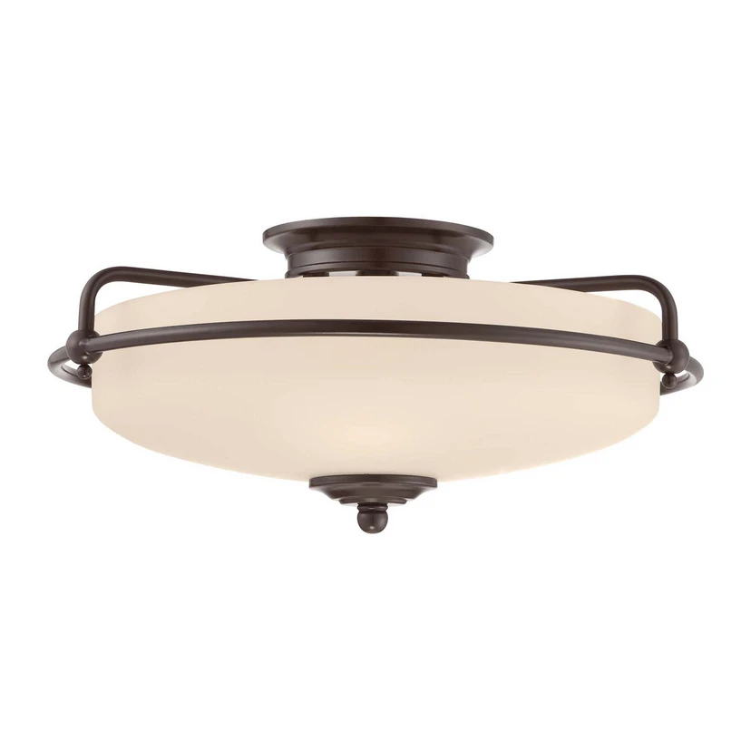 Griffin F taklampe, Ø 42 cm, skjerm i opalt glass, bronse