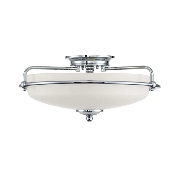 Griffin F taklampe, Ø 42 cm, skjerm i opalt glass, krom