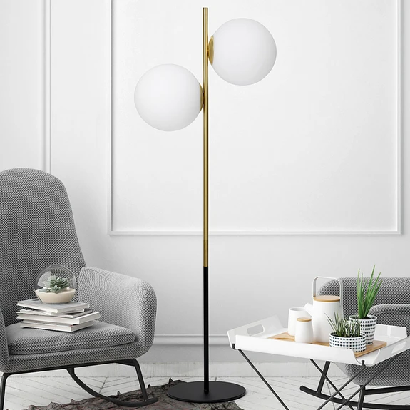 Gulvlampe Jugen, svart/gull, 2 lyskilder