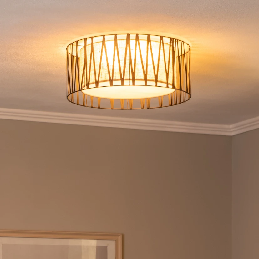 Harmony taklampe, svart, naturlig jute, Ø 50 cm