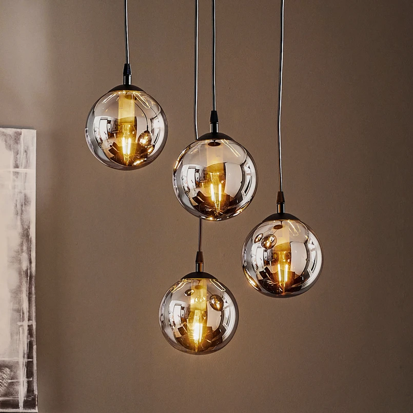 Hengelampe Glassy, 4 lyskilder, svart, grafitt, glass, E14