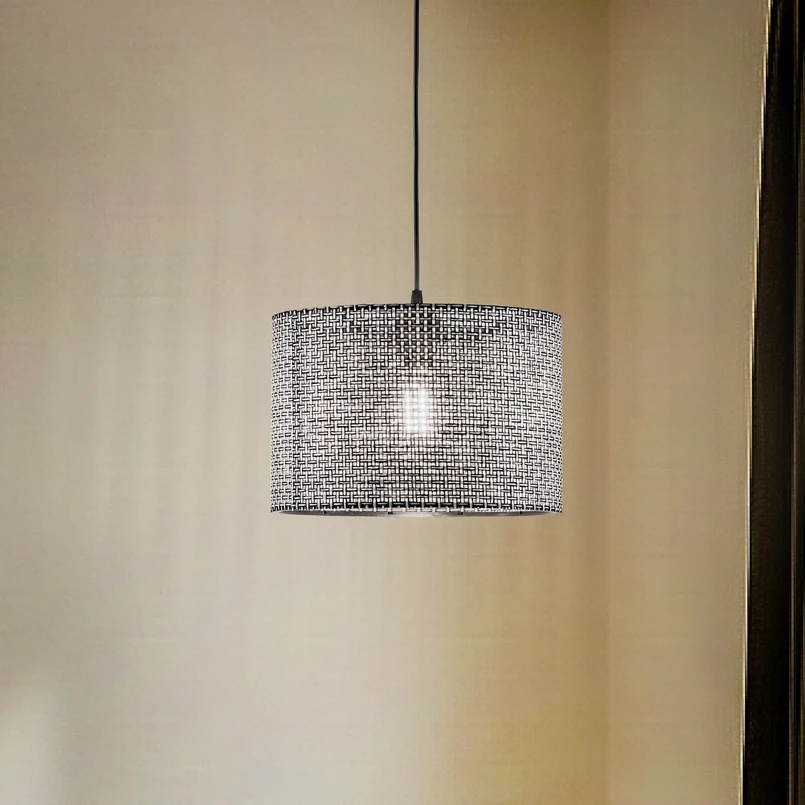 Hengelampen Nara kombinerer stilig design med funksjonell allsidighet. Den er laget av høykvalitets metall og stoff og imponerer med sin mønstrede overflate i svart, som gir ethvert rom et elegant preg. Lampen er ideell for bruk i stuer og soverom og er et harmonisk supplement til ulike innredningsstiler.