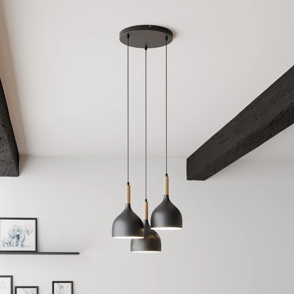 Hengelampe Noak 3 lyskilder rund svart/tre natur