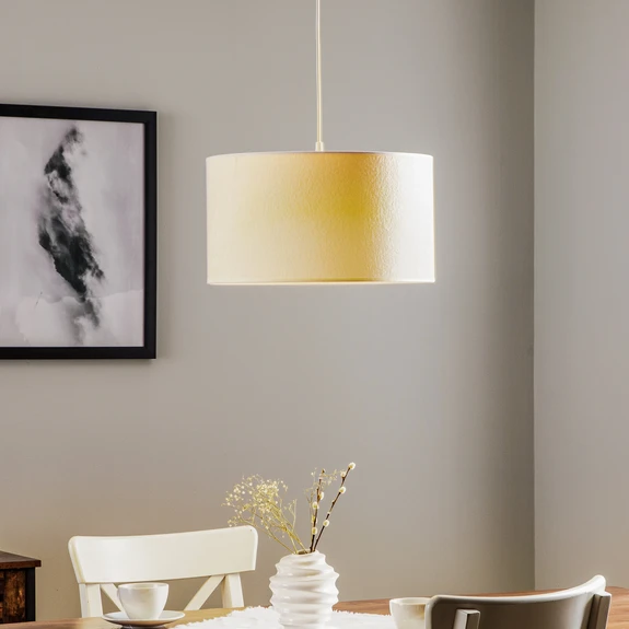 Hengelampen Roller kombinerer moderne design med luksuriøs fløyel og en stilig fargekombinasjon av hvitt og gull. Denne lampen er et ekte blikkfang og passer perfekt inn i forskjellige rom som stue, kjøkken, soverom og spisestue. Den edle fløyelen gir lampen en spesiell følelse og sørger for en behagelig atmosfære.
