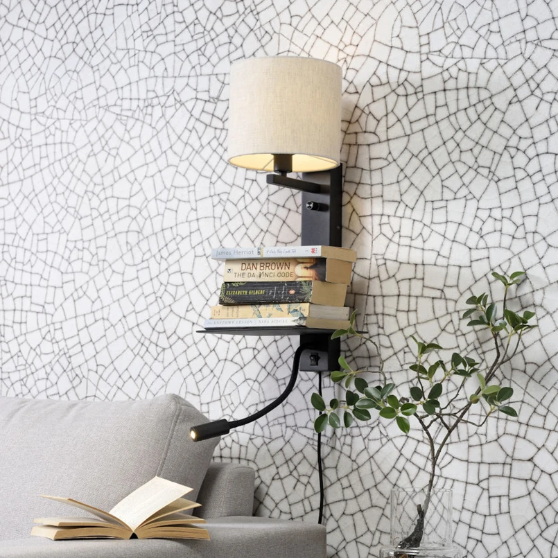 Florence vegglampe med praktisk hylle og ekstra leselampe på den fleksible armen Florence vegglampe kombinerer mange praktiske funksjoner som gjør den ideell som kveldsbelysning ved siden av sengen. Den har en hylle som også er utstyrt med en USB-port. Dermed kan du enkelt plassere bøker eller til og med smarttelefonen din og lade den samtidig. Det er også en integrert dimmerbryter som ikke bare kan brukes til å slå vegglampen på og av uten problemer, men også til å dimme den. Skjermen i tekstil skaper et svært diffust og behagelig lys. Den som trenger målrettet punktbelysning, vil glede seg over den lille LED-spotten på den fleksible armen. Spesielle egenskaper ved It's about RoMi: - bruk av bærekraftige materialer siden 2010 - et tre plantes for hver armatur som selges - dette kompenserer for CO2-utslipp - samarbeid med Eden Reforestation Projects siden 2019 - hver armatur er inspirert av en by