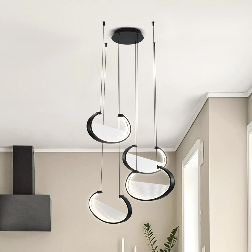LED-hengelampen Adele kombinerer moderne design med funksjonell belysning og er et høydepunkt i enhver stue eller spisestue. Lampen er laget av høykvalitets aluminium og akryl og har en elegant svart farge som passer perfekt inn i moderne interiørstiler. Den integrerte LED-lyskilden gir et energibesparende og varmhvitt lys som skaper en behagelig atmosfære.