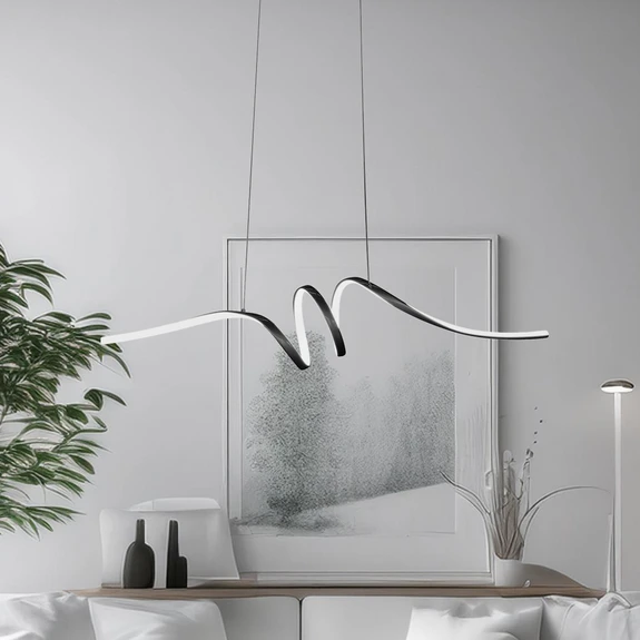 LED-hengelampen Loop kombinerer moderne design med effektfull belysning. Lampen er laget av høykvalitets metall og plast og har et stilig utseende i svart krom. Den avgir et kjølig, universalhvit lys som stråler i alle retninger gjennom LED-lampene som er montert på den ene siden i det vridde lyselementet bak opalhvite deksler. Kombinasjonen av moderne stil og energibesparende lys gjør denne lampen til et utmerket valg for moderne boligkonsepter.