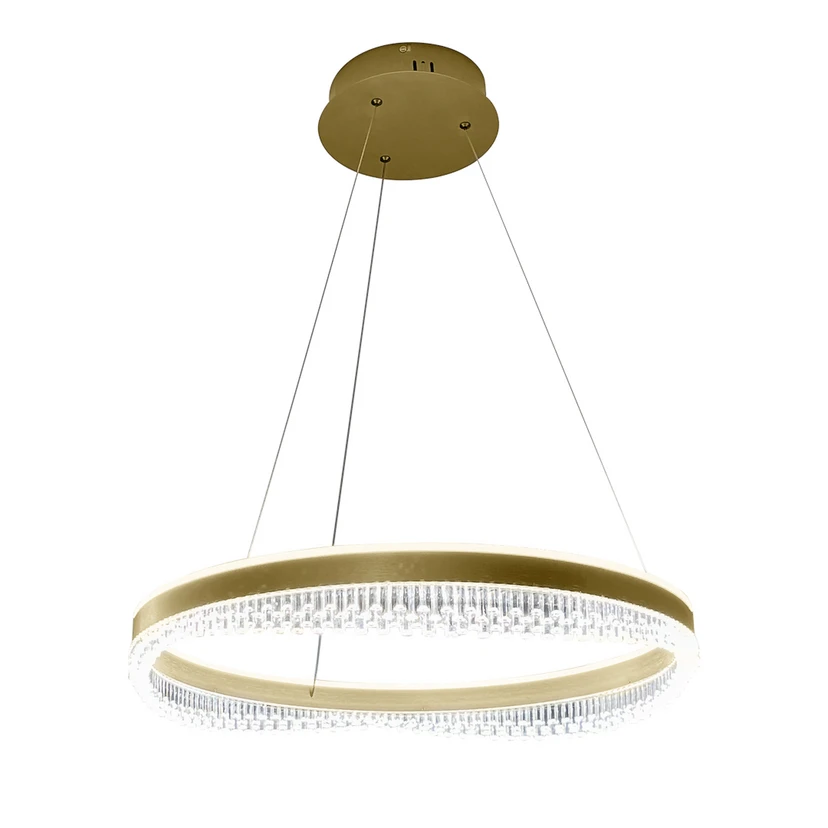 LED-hengelampe Preciosa, gull/krystall, akryl, Ø 60 cm