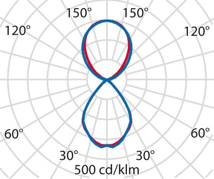 - Lysfordeling: direkte og indirekte, symmetrisk, 37 ° hver