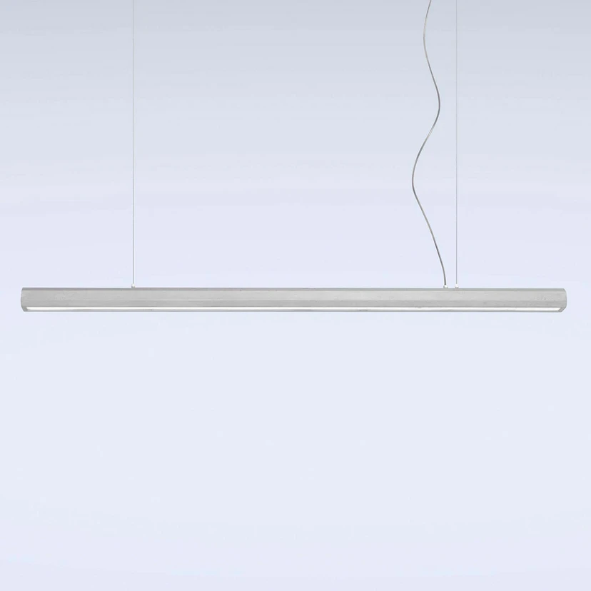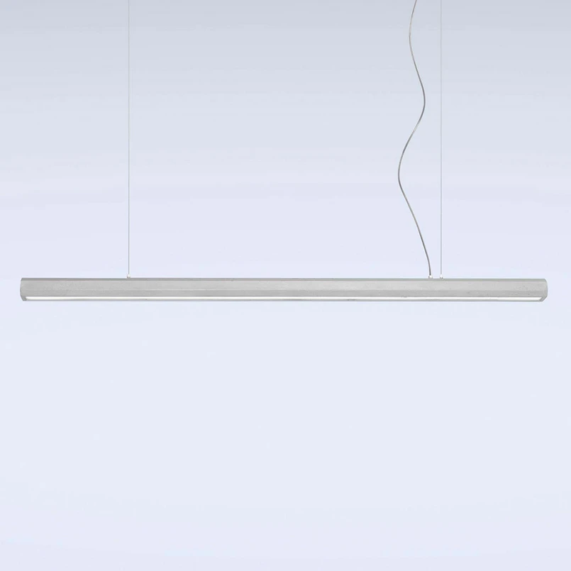 LED-pendel Materica i tidløs pendelform Med utgangspunkt i den enkle grunnformen til en bjelkependel har designeren Roberto Giacomucci skapt en pendel som passer i mange moderne, eksklusive stuer og salonger. Betongmaterialet gir Materica et kjølig, teknisk utseende. Den integrerte LED-stripen på undersiden gir direkte belysning.
