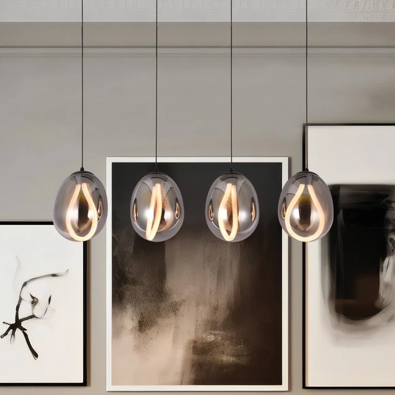 LED-pendellampe Melanie, lengde 85 cm, røykgrå, glass 4 lyskilder.