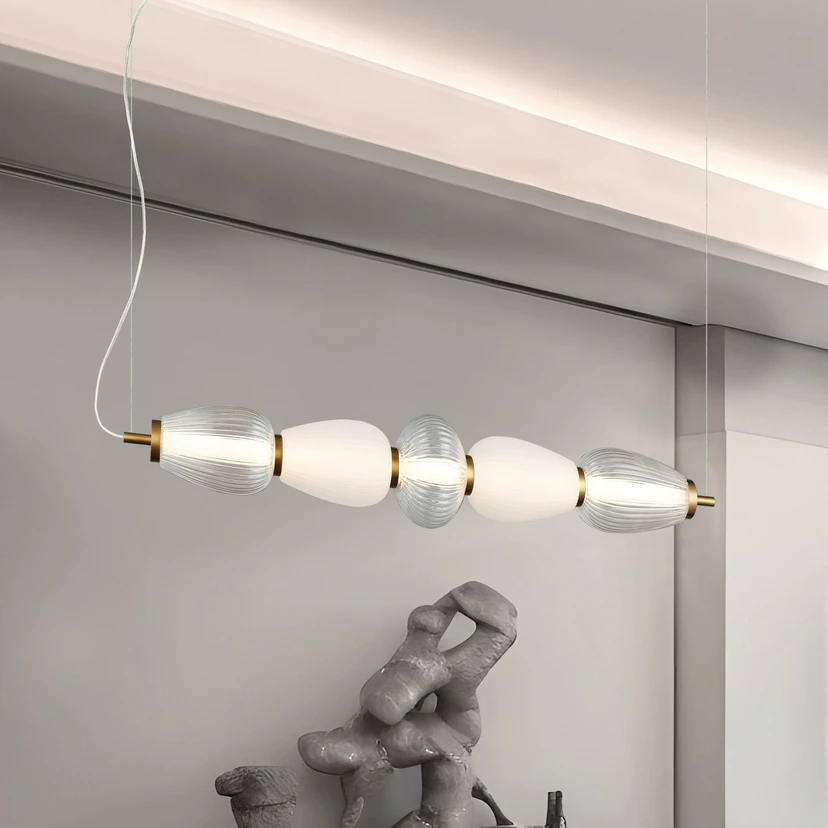LED-pendellampe Shiny, lengde 83 cm, klar/hvit, glass