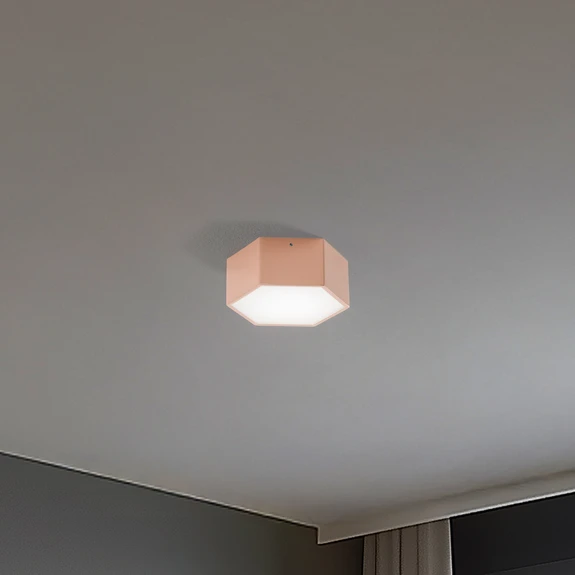 LED-taklampe Libre i sekskantet form med glassdiffusor