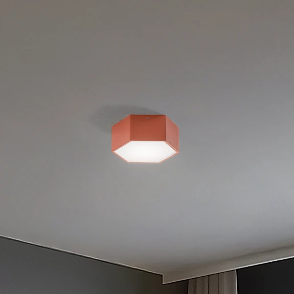 LED-taklampe Libre i sekskantet form med glassdiffusor