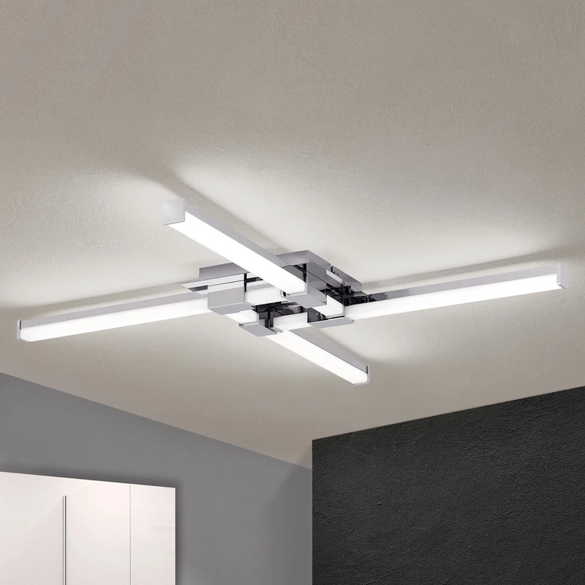 LED-lampen Argo strekker seg fra en felles base med fire lange, enkle lamper i alle retninger, og gir en bred og homogen belysning av rommet. Argo er også utstyrt med nødvendige vannsprutbeskyttelsen (IP44), som er en forutsetning for bruk av lyskilder på bad og i andre våtrom.