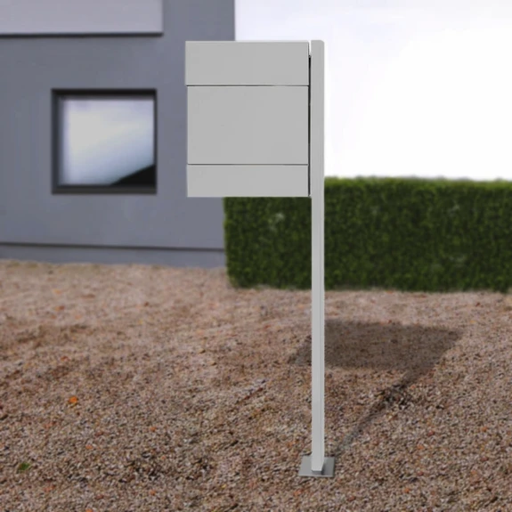 Praktisk Letterman V frittstående postkasse - med avisrom og post Letterman V-brevkassen imponerer med sin puristiske design og fremragende utførelse. Den er utstyrt med et 40 cm bredt aviskammer som garanterer krøllefri leseglede. Letterman V er dermed den ideelle løsningen for alle avislesere som stiller spesielle krav til lesestoffets beskaffenhet. Den 32,5 cm lange og 3,5 cm høye innkaståpningen er dimensjonert slik at også C4-konvolutter kan legges inn uten at de krøller. Leveranse inkl. post: 8 x 4 x 144 cm.