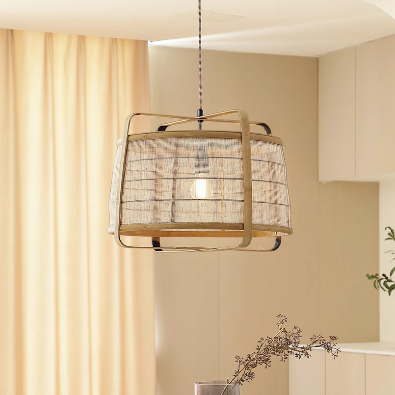 Lindby hengelampe Liriana, bambus, jern, Ø 45 cm, E27