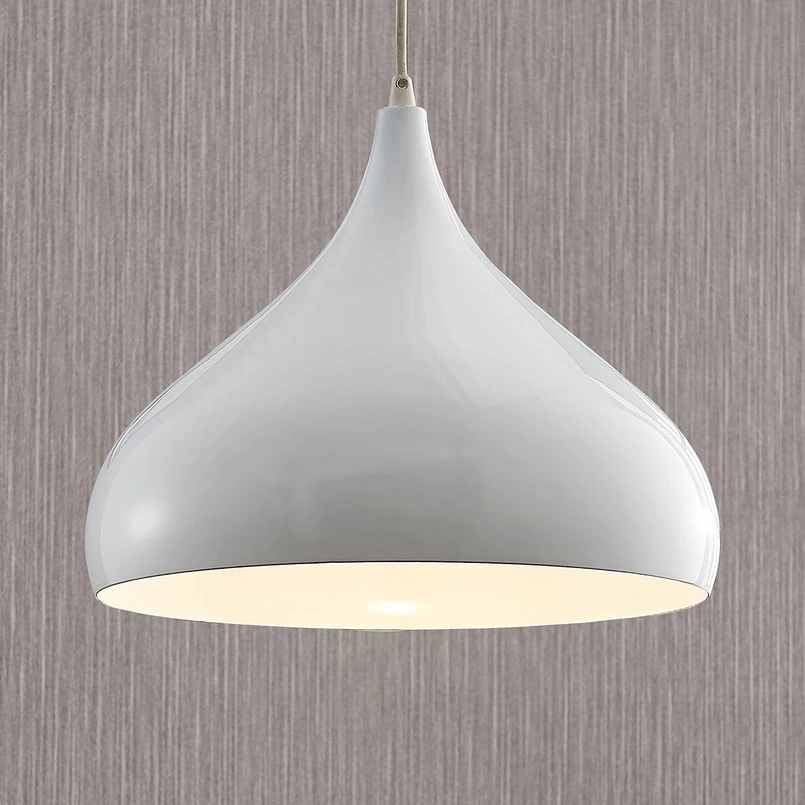 Rund pendellampe Ritana i tidløs hvit Ritana er ideell for romantisk, stemningsfull belysning av bord eller spiseplass. Pendellampen har en aluminiumsskjerm som starter smalt på toppen og blir bredere mot undersiden. Ettersom aluminium er et ugjennomsiktig metall, konsentreres lyset nedover slik at lyset nesten utelukkende brukes til å belyse bordflaten uten å blende. Dette er selvfølgelig akkurat som det skal være, og Ritana pendellampe er et av de spesielt harmoniske belysningsobjektene, både visuelt og når det gjelder lyseffekten, som imponerer nesten overalt med sin stilrene glamour og estetikk.