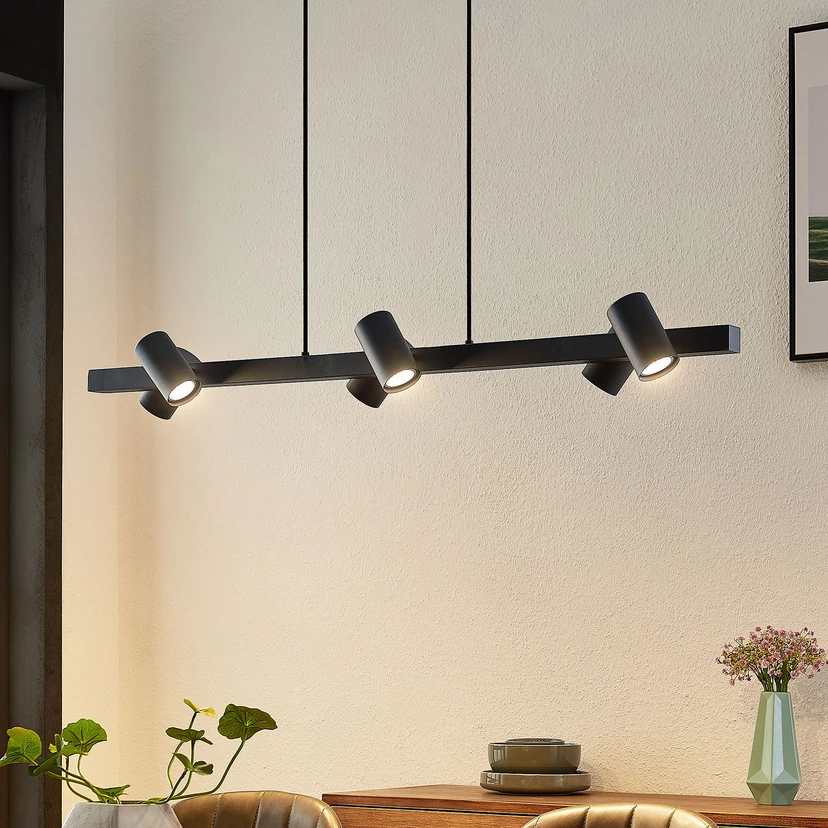 Lindby hengelampe Savoli, 116 cm, svart, 6 lyskilder, stål