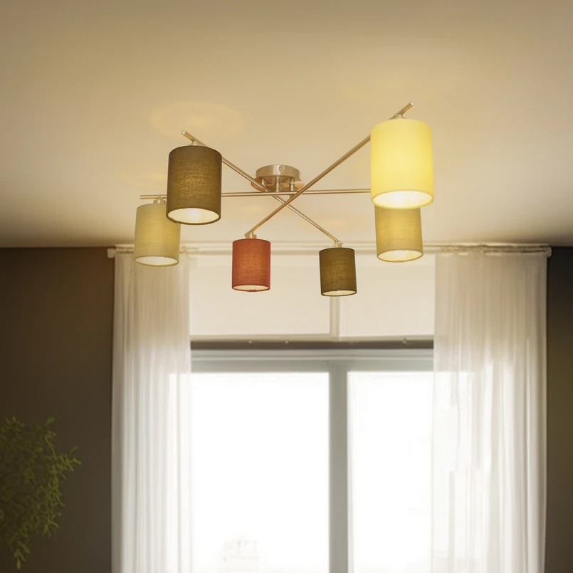 Sjarmerende Pellinora taklampe med fargerike tekstillampeskjermer