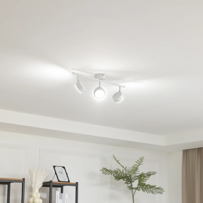 Den 3-lyskilde downlight Jyla er laget av jern og gir omgivelsene et elegant preg med sitt hvite ytre, spesielt takket være den matte overflaten. Samtidig passer den lett inn i forskjellige oppholdsrom takket være sitt diskrete design. Den er for eksempel ideell som lyskilde i gangen, kjøkkenet, stuen eller spisestuen. De tre runde skjermene er justerbare, slik at bestemte områder eller gjenstander kan settes perfekt i scene, og man har mulighet for individuell belysning. De nødvendige GX53-pærene, som kan kjøpes som tilbehør, har en buet linse og ser derfor ut som en glasshalvkule.