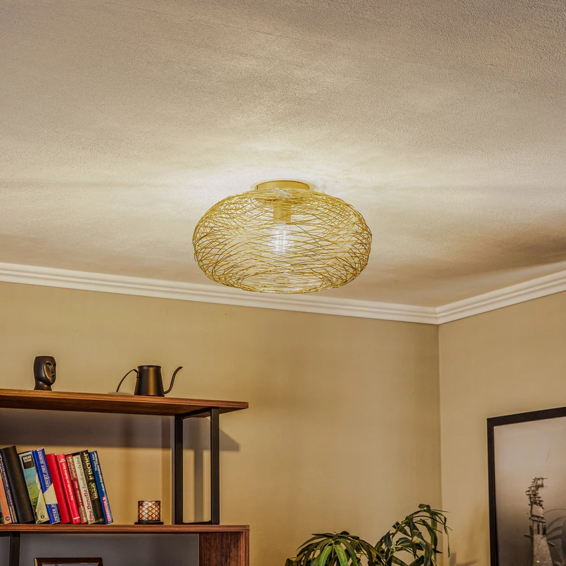 Kaviya taklampe med skjerm i trådnett Denne taklampen kombinerer funksjonell belysning med et tiltalende design. Taklampen står for stilfull design og en flott boligopplevelse i Lindby-merkevarekvalitet. Med sitt klare utseende kompletterer den effektivt belysningskonseptet i boligen din. Hvis lampen kombineres med dimbare lyskilder eller en ekstern dimmer (medfølger ikke), kan den justere lysstyrken etter behov. Taklampen integreres perfekt i ethvert rom og skaper en flott og koselig atmosfære. Den er egnet for bruk med lyskilder med E27-sokkel. Taklampen i fargen gull er laget av jern. Den er en dekorativ måte å lyse opp rommet ditt på, noe som gjør den til et utmerket valg til hjemmet ditt. Med denne lampen kan du pynte opp de fire veggene dine ytterligere.
