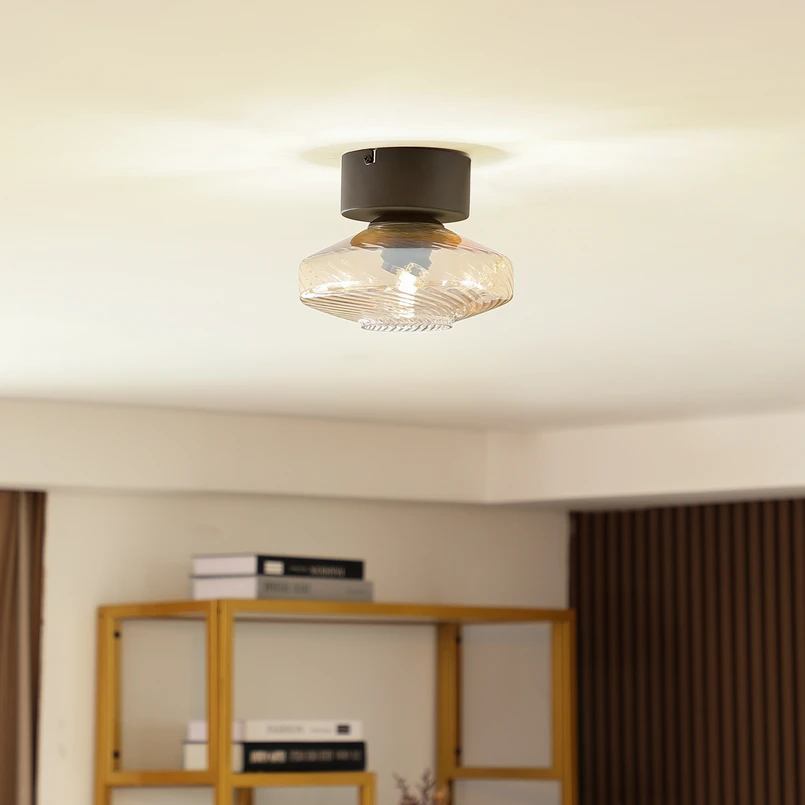Sylphie ravfarget taklampe i vintagedesign med lampeskjerm i glass Denne vakkert designede taklampen gjør en god figur i ethvert hjem. Du kan justere lysstyrken etter behov ved hjelp av en ekstern dimmer (ikke inkludert). Den flotte designen byr på en rekke bruks- og kombinasjonsmuligheter og kan integreres perfekt i interiøret. Alle kvalitetene og særtrekkene til Lindby-merket er samlet i denne taklampen. Taklampen i fargene rav og svart skaper en vakker atmosfære og kommer til sin rett i ethvert rom. Den er utstyrt med en E27-sokkel. Denne taklampen, som raskt har funnet sin rette plass, kompletterer helheten i interiøret ditt. Taklampens vakre lyseffekt skaper en koselig og behagelig atmosfære.