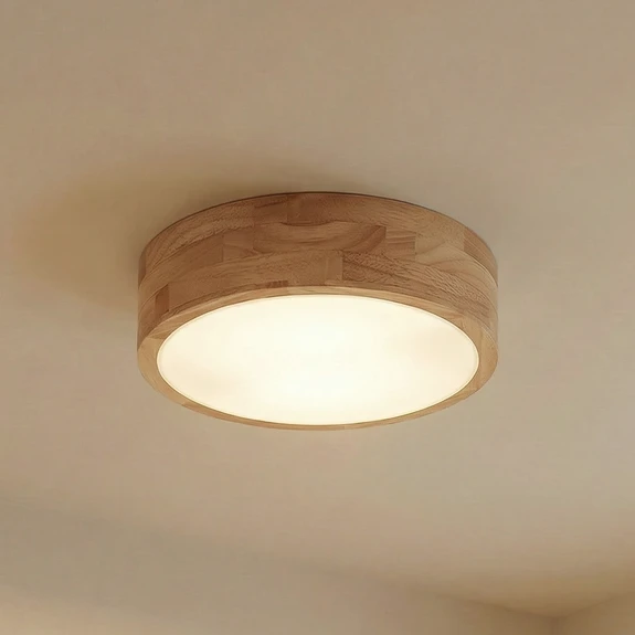 Lindby taklampe Tanju, Ø 30 cm, 2 lyskilder, eik, E27