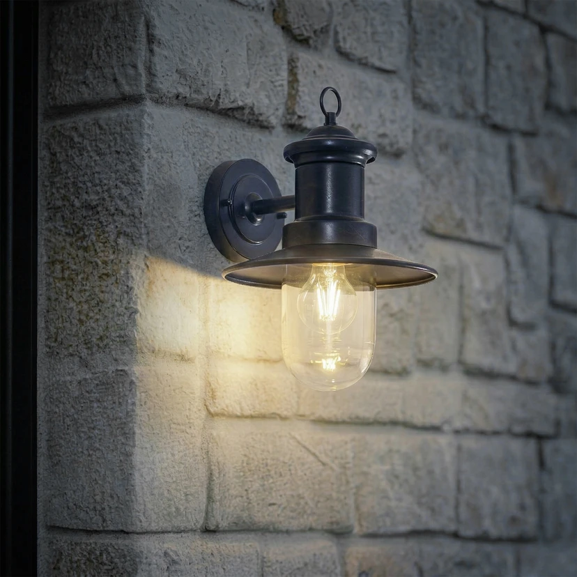 Lampen er utstyrt med en E27-fatning og gir muligheten til å justere lysintensiteten individuelt via en ekstern dimmer. Dette muliggjør fleksibel belysning som skaper en koselig eller funksjonell atmosfære etter behov. Kombinasjonen av høy kvalitet og allsidig funksjonalitet gjør denne vegglampen til et ideelt valg for utendørs bruk.