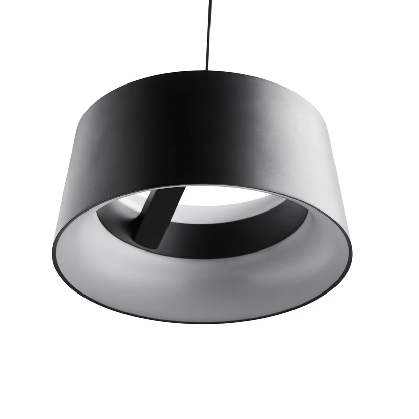 Ringformet Cookie LED-pendellampe - dimbar utenpå Cookie-serien kjennetegnes av den ringformede lampeskjermen, som på innsiden er utstyrt med LED-lamper bak et satengbelagt deksel. Den minimalistiske designen passer godt inn i moderne innredningskonsepter. Hengelampen er også utstyrt med et slankt kabeloppheng og en sylindrisk baldakin. Lampeskjermen er laget av aluminium og har en monokrom finish. Den integrerte LED-spotlighten gir varmhvitt lys med god fargegjengivelse og kan dimmes eksternt ved behov.