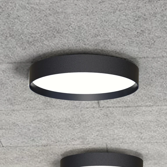 Lucia taklampe med rund ramme og prismatisk skjerm Den tidløse designen til Lucia taklampe gjør at den kan kombineres med mange ulike møbleringskonsepter - enten det er klassisk eller moderne, i private eller offentlige/kommersielle omgivelser. En smal aluminiumsramme i form av en kort sylinder omgir den flate skjermen. Sistnevnte, med sin mikroprismatiske struktur, sørger for en homogen spredning av det varmhvite direkte lyset; blending og skygger minimeres - god fargegjengivelse: CRI > 90 - eksternt dimbar (bakkant)