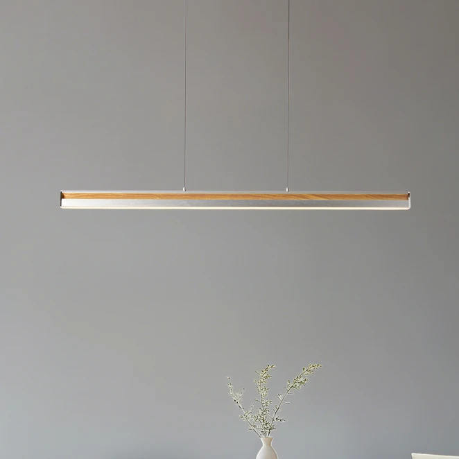 LED-hengelampen Lutana kombinerer moderne design med funksjonell belysning. Den presenterer seg i en stilig kombinasjon av lys, naturlig trefarge og delikat rosagull. Den integrerte LED-lyskilden gir et varmhvit lys som skaper en behagelig atmosfære og er dimbar trinnvis via veggbryteren. Lyset stråler oppover og nedover over hele lampeskjermens lengde. Med sitt klare formspråk passer Lutana perfekt inn i moderne boligkonsepter og blir et stilig blikkfang over enhver spisebord.