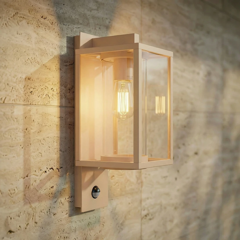 Lucande utendørs vegglampe Ferda, sensor, fatning nederst, beige