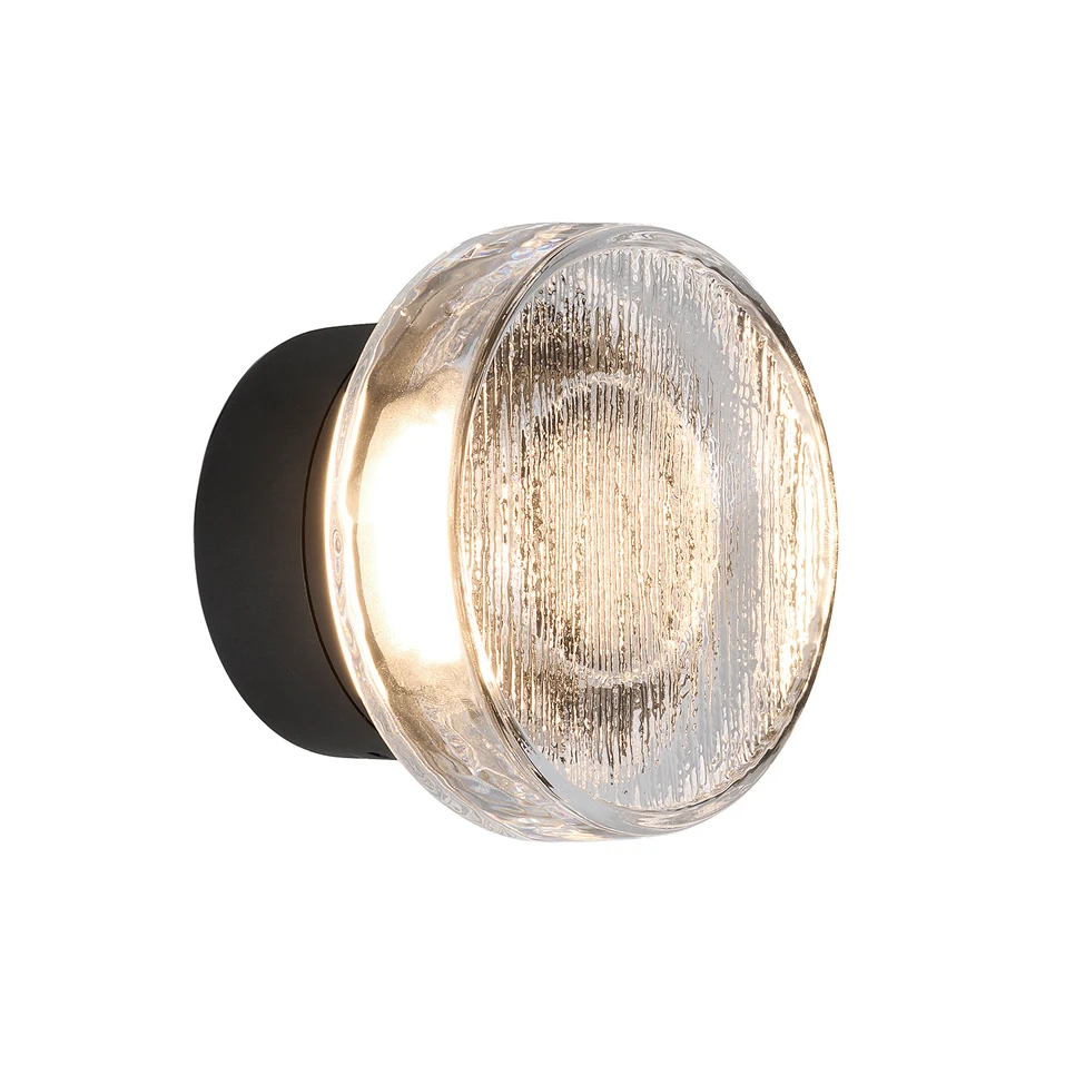 MARSET utendørs LED-vegglampe Roc, Ø 14 cm, svart/gjennomsiktig