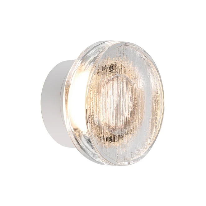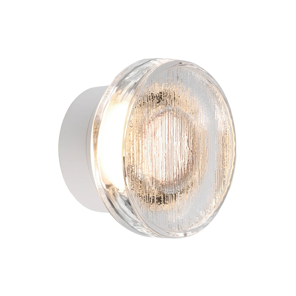 MARSET utendørs LED-vegglampe Roc, Ø 17 cm, hvit/gjennomsiktig