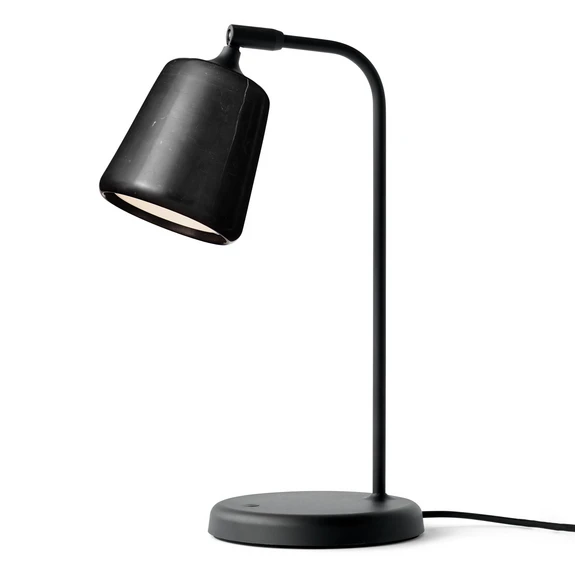 Med dimmer: Material The Originals bordlampe med marmorskjerm Material The Originals designerbordlampe fra designerduoen Nørgaard & Kechayas har et svært eksklusivt utseende takket være marmorskjermen. Ellers er den preget av enkelhet, med en slank stilk og en klassisk formet skjerm uten ytterligere detaljer eller dekorative elementer. Lysstyrken kan justeres ved hjelp av dimmeren på sokkelen, og skjermen kan dreies. Nørgaard & Kechayas og det danske selskapet New Works har lansert denne lampen sammen. I tillegg til armaturer produserer New Works også møbler og andre innrednings- og pyntegjenstander for en stilfull skandinavisk bolig - inkl. 3-trinns dimmer på armaturens sokkel