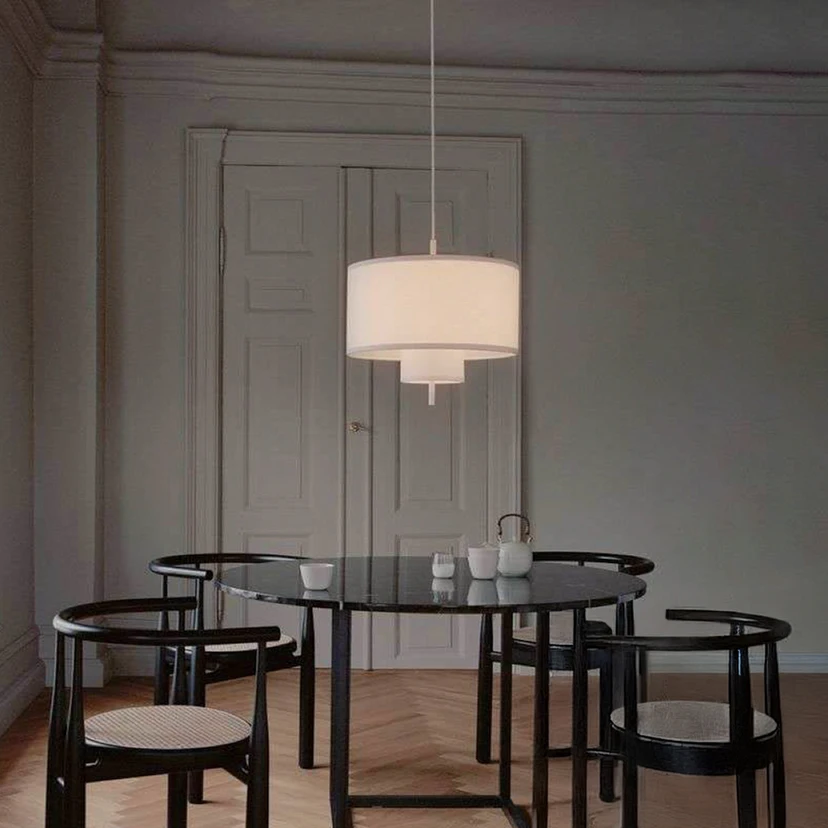 Hvit hengelampe Margin i tekstil i skandinavisk design